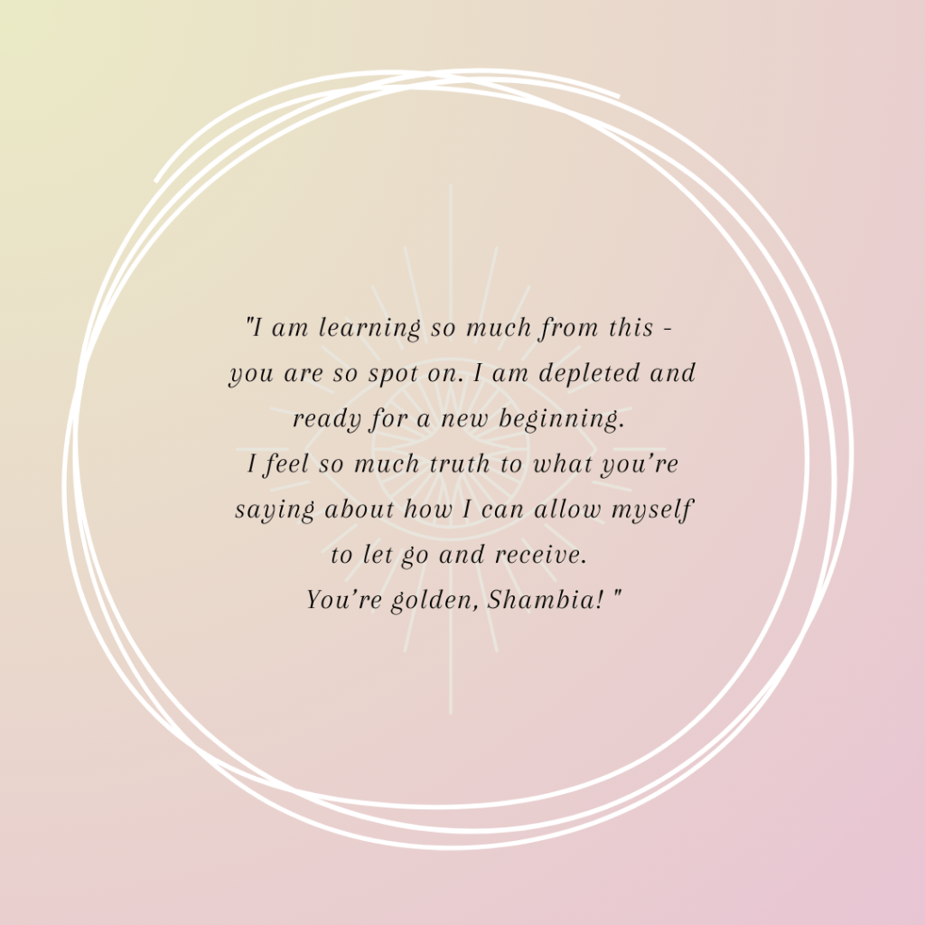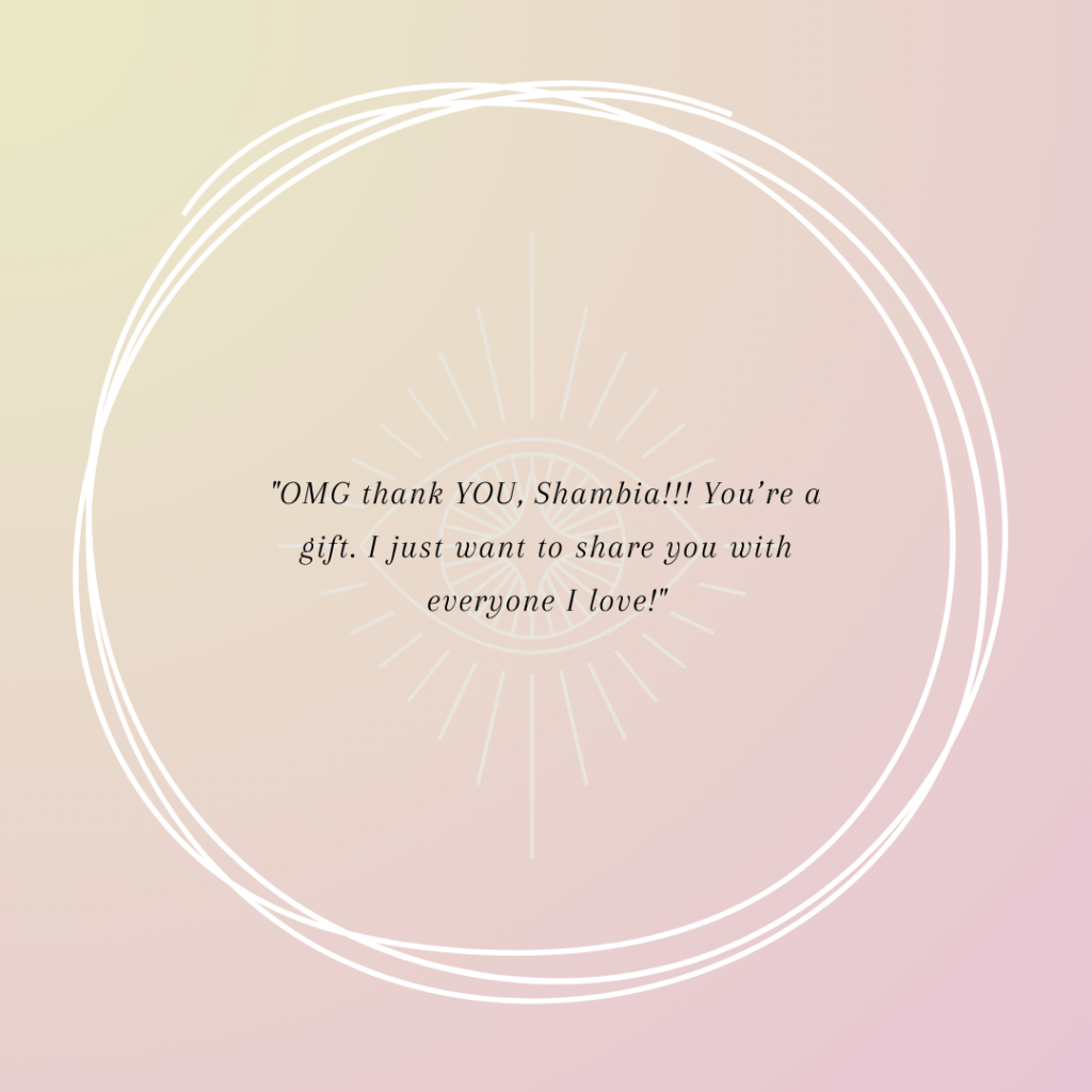 It became CLEAR I was here to connect others and their ignited higher form of consciousness. I help transform their life by illuminating old patterns that are connected to generational karma and I remind them of the powerful Being they have always been.” – Shambia